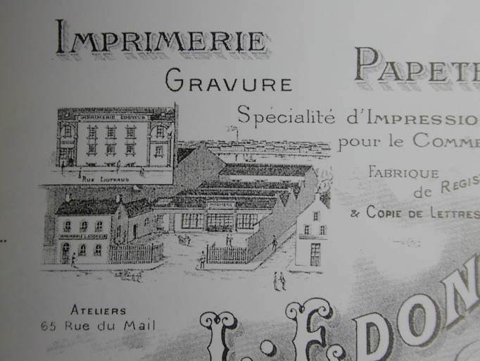Imprimeur place du Palais, à Rennes (35), M. Edoneur fait construire, en 1907, divers ateliers à usage d'imprimerie par l'entrepreneur Robert selon les plans dressés par l'architecte Eugène Guillaume. Cet ensemble industriel se compose alors d'un atelier de composition typographique, d'une salle des presses typographiques et lithographiques, d'une salle des reliures et des expéditions, d'une salle des graveurs puis des bureaux. En 1919, constitution en SARL des établissements Ramage. Le 14 janvier 1928, L.-M.F. Edoneur, H.J. et T.-L.J. Ollivier, puis J.-E. Ramage constituent une nouvelle SARL au capital de 300 000 francs sous la raison sociale Ollivier frères et Ramage, dont le siège social se situe 43 rue Saint-Hélier, à Rennes (35). En 1971, les établissements Ramage exercent une activité d'imprimerie avec impression à plat et continue. La production de l'imprimerie Ramage débouche à 100 % sur le marché régional. La date de cessation d'activité de l'imprimerie est inconnue. Aujourd'hui, les bâtiments sont désaffectés.