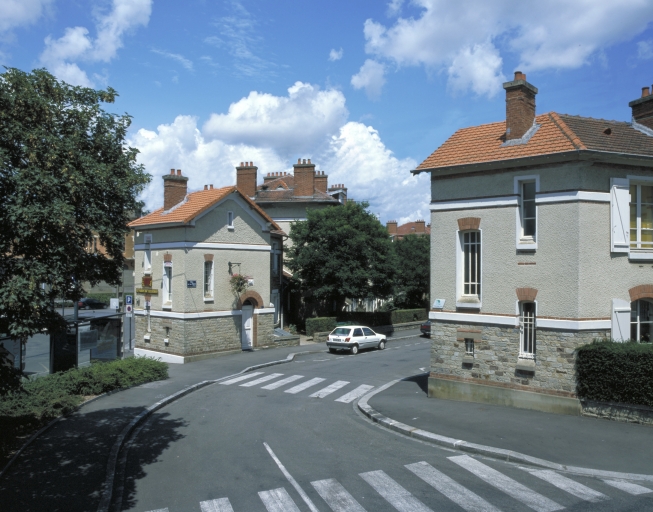 Cité jardin construite, au sud de la voie ferrée, en bordure de l´ancien faubourg de Nantes. Elle s´étend sur trois îlots, l´un en suture avec un bâti existant, au nord-est, les deux autres, de forme triangulaire, délimités par 2 voies internes disposées en T et 2 voies limitrophes déterminant la forme, elle aussi triangulaire, du plan d´ensemble, dont les contours légèrement irréguliers sont imposés par le tracé courbe de la rue de Nantes et par le tracé de la rue Ange-Blaise. L´une des voies internes constitue un axe de symétrie ponctué par deux pavillons qui marquent l´entrée principale de la cité. Elle offre une perspective, depuis le faubourg, sur un immeuble de gabarit plus élevé, vers lequel convergent tous les points de vue depuis les trois voies d´accès à la cité. Les immeubles sont construits à l´alignement des voies, mitoyens mais rythmés par des pavillons ou séparés par des passages aujourd´hui occupés par des constructions en rez-de-chaussée. Des boutiques occupent le rez-de-chaussée des immeubles qui bordent le faubourg. Des cours-jardins sont aménagées au coeur des deux îlots triangulaires. Les immeubles, à 2 ou 3 étages carrés sur rez-de-chaussée surélevé, sont construits en moellons de schiste, partiellement masqués par un enduit au niveau des étages, en façade sur rue ; la couverture en tuiles mécaniques et les linteaux des baies, en briques, participent du décor polychrome.