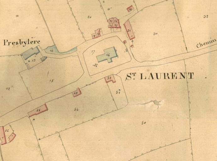 [1842]. Plan cadastral parcellaire de la commune de Rennes. Section K, dite de Saint-Laurent, 1ère feuille, dessin, Jouchel du Ranquin, Roger, Viel, Ferré et Simon géomètres, 1842 (A. D. Ille-et-Vilaine).