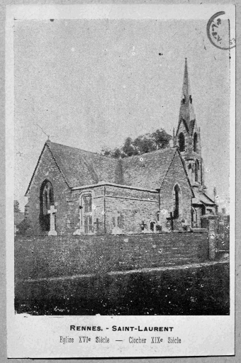 [1900 ca]. Rennes. Saint-Laurent, église XVIe siècle - clocher XIXe siècle, carte postale sans éditeur, [s.d] (A.D.35 : 6 Fi).