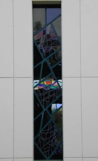 Plan allongé, oratoire et bibliothèque situés en soubassement, église halle. Couverture en terrasse.