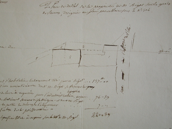 Plan de la propriété de M. Bigot, dessin, par Millardet, 23 novembre 1842 (A. C. Rennes).
