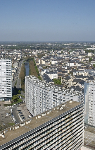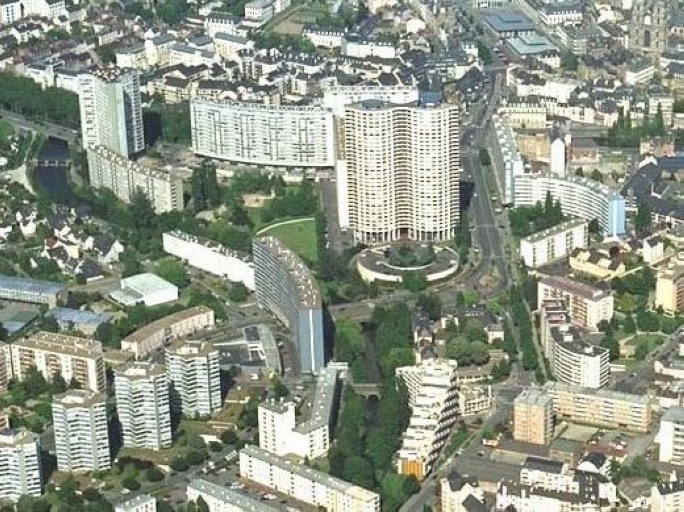 La nouvelle structure urbaine s´appuie partiellement sur l´ancien réseau viaire qu´elle modifie cependant sensiblement par l´élargissement de la rue de Brest et par la suppression des réseaux permettant d´accéder au quartier du Mail, par la suppression d´une partie du réseau hydraulique, enfin par un remembrement radical. Celui-ci permet à Georges Maillols d´élaborer une composition ouverte, où les immeubles fortement surélevés en raison des risques d´inondation, constituent un ensemble de volumes disposés autour d´une vaste esplanade, au nord, ou d´espaces végétalisés (place Yves-Mayeuc et square du Bourg-l´Evêque). S´il doit offrir une capacité de 1200 logements, les activités commerciales et artisanales ont cependant été intégrées au projet comme la garantie de sa viabilité.