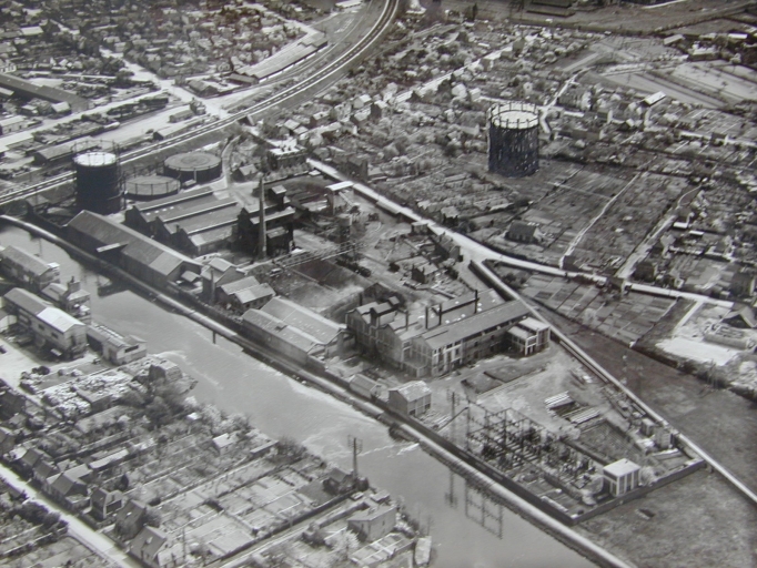 Vue aérienne de l'usine à gaz, vue n°4, photographie, par Chouffet, 1949 (A. C. Rennes).