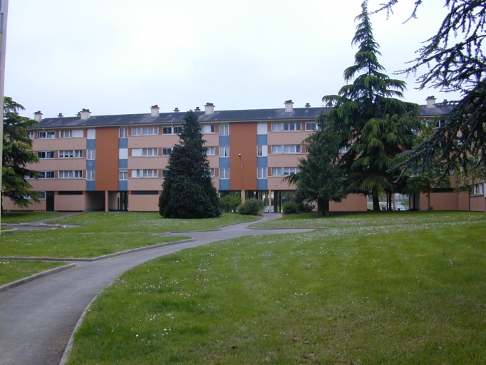 Groupes de 3 et 5 immeubles à passages traversants disposés en S formant square dans les angles internes. Ils sont implantés en fort retrait de la voie large, dont ils sont séparés par un espace libre affecté au stationnement.