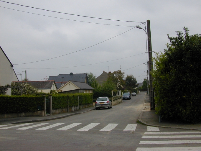 Plan masse : lotissement formé de 12 lots desservis par une impasse. Implantation du bâti : en retrait, en rangée discontinue. Position des jardins : en fond de parcelle. Typologie du bâti : maisons élémentaires, maisons d'étage.