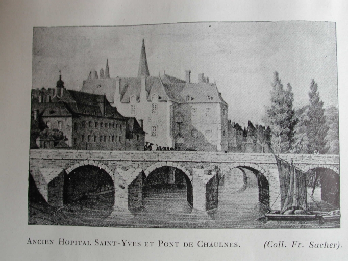 Ancien hôpital Saint-Yves et pont de Chaulnes, reproduction. In BANEAT, Paul. Le Vieux Rennes. Rennes : Plihon et Hommay, [1911].