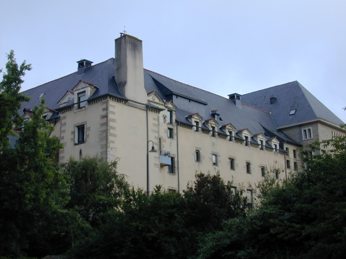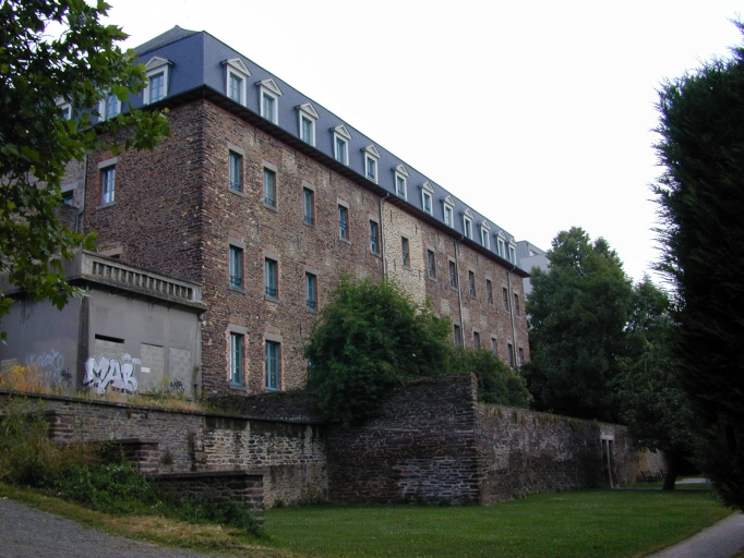Selon Banéat, le couvent de calvairiennes, construit dans le deuxième quart du 17e siècle, occupe l´emplacement d´un prieuré, détruit au 10e siècle, qui dépendait du domaine épiscopal. Il est donné à Mainguené de la Guerche, en 1032, qui le relève et le cède à l´abbaye Saint-Julien de Tours, en 1037. Abandonné au 16e siècle, il deviendra la propriété des calvairiennes en 1633. Les religieuses seront transférées dans d´autres monastères, dans la deuxième moitié du 18e siècle, et l´établissement saisi à la Révolution. Entre 1792 et 1808, il est affecté aux militaires, date à laquelle on y installe un refuge. En 1810, il servira momentanément de caserne, puis à nouveau de refuge.