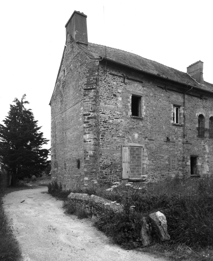 La confrontation du dessin de 1543 et des différentes vues de l´arrière du logis prises avant sa démolition fait clairement apparaître son originalité. Les traces d´une coursière accrochée au premier étage, sur laquelle ouvraient deux portes béant dans le vide. Cette coursière de bois, selon un principe de distribution fréquemment employé dans les manoirs bretons du 15e siècle menait à des garde-robes et des latrines situées dans des tours contre les angles nord-ouest et sud-ouest du logis. Au milieu de cette même façade postérieure, un troisième corps de logis, en retour d´équerre disparu bien avant le 19e siècle devait abriter la cuisine. C´est en fait à peu près sous cet aspect qu´est représenté l´arrière du logis sur le dessin manuscrit de 1543. En fait un édifice de transition associant le système des coursières hérité des distributions du début du 15e siècle et celui des tours d´angle, abritant garde-robes et latrines revêtement symbolique de fonctions avant tout sanitaires (n).