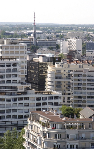A l'ouest, la densité du bâti forme une masse compacte, bien que rythmée d'espaces libres, mais ceux-ci sont tous contenus par le volume bâti dont les textures accentuent la matérialité. Dans cet ensemble combinant activités résidentielle, commerciale et de services, on retrouve la hiérarchisation des espaces imaginés par le maire Ange de Léon au milieu du 19e siècle. Les habitations bourgeoises sont positionnées au nord, au contact de la ville ancienne, les espaces de commerce et de bureaux sont au centre et l'habitat populaire est reporté à la périphérie, au sud et à l'ouest.