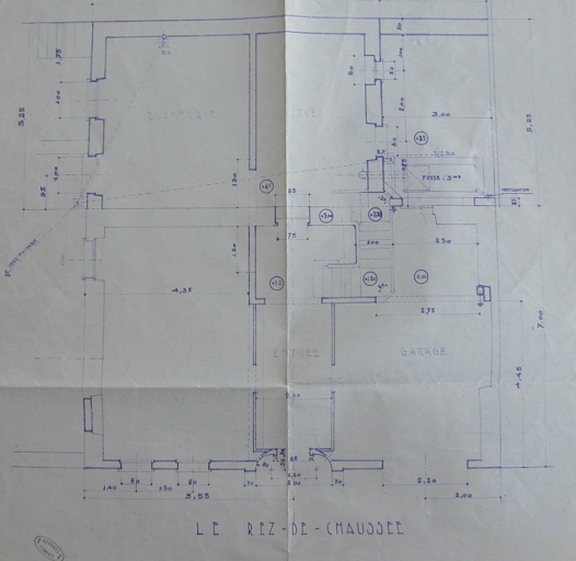 Propriété de M. Laforge, plan du rez-de-chaussée, dessin d'exécution, par E. Laforge, 1949 (A.C. Rennes).