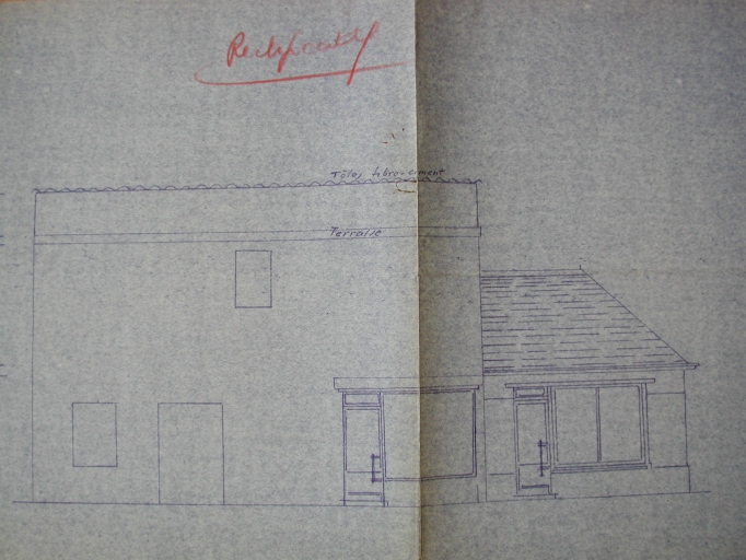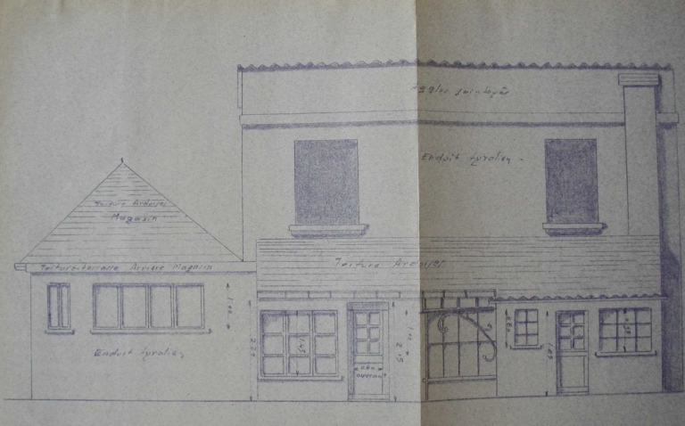 Fournil et boutique. Elévation sur cour, tirage de plan, 1955 (A. C. Rennes).