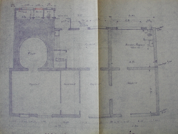 Fournil et boutique. Ancien rez-de-chaussée, tirage de plan, 1955 (A. C. Rennes).