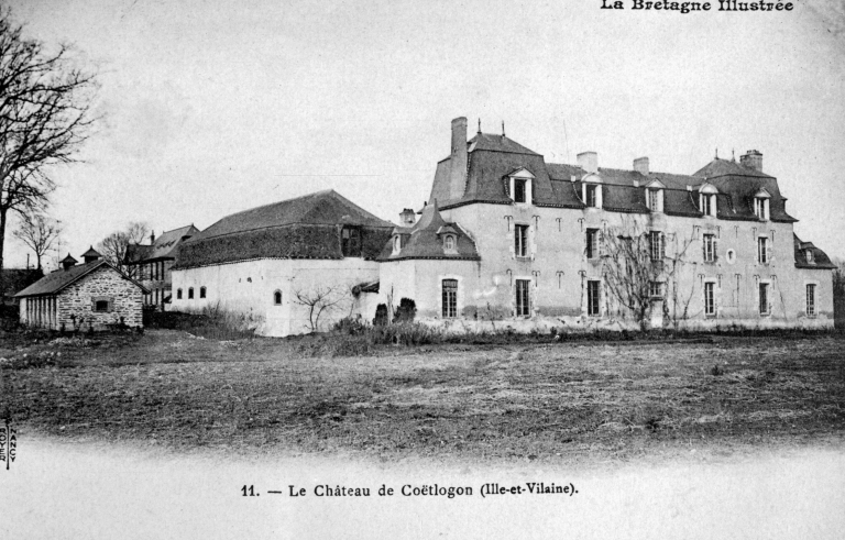 Il est curieux de constater que si l´architecture du château, ses baies à linteau droit, ses portes à traverse de pierre, sa corniche à modillons, et ses lucarnes à frontons cintrés et triangulaires alternés appartiennent clairement au style de la fin du 17e siècle, l´escalier principal en revanche avec ses balustres de bois tournés est tout à fait caractéristique des années 1730. D´autre part, aucun décor de boiseries n´a été conservé au rez-de-chaussée, mais ceux que l´on retrouve à l´étage ne sont pas non plus antérieurs au 18e siècle. Il est d´ailleurs intéressant de noter que les pièces du comble sont habillées de boiseries simples mais soignées, avec alcôves et chauffées de cheminées à pilastres cannelés, datables de la fin du 18e siècle, qui en font incontestablement des chambres de maître. On peut alors se demander si le château de Coëtlogon, parvenu dès 1730 dans les mains de la puissante famille de Boisgelin, marquis de Cucé et baron de la Roche-Bernard, qui possédait déjà parmi de très nombreuses seigneuries et châteaux, celui de Cucé à Cesson, ne fut pas dès lors transformé en logis partagé, le propriétaire s´y réservant l´usage des étages lors de ces séjours occasionnels.