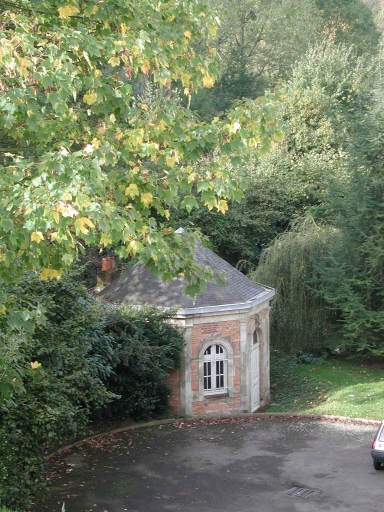 Fabrique de jardin conservée en briques et couverture en ardoises.