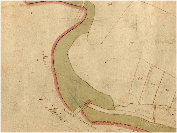 Moulin de Moncorps, plan de situation. (A.D. Ille-et-Vilaine 7S 35. Fonds Préfecture. Service hydraulique, réglementation (14 juillet 1857).