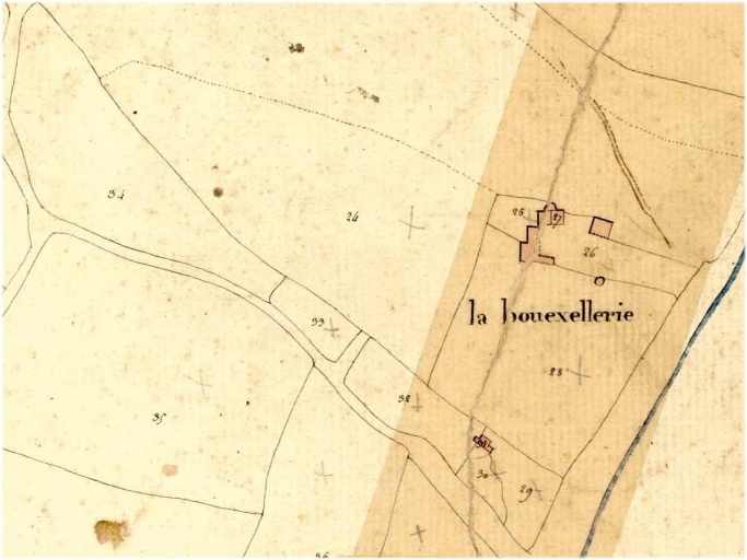 Plan géométrique parcellaire de la commune d'Acigné, section C1 dite de Louvigné. Plan par Beuscher ainé géomètre, [1819], échelle 1/2500e. (A. D. d'Ille-et-Vilaine : 3 P 5234).