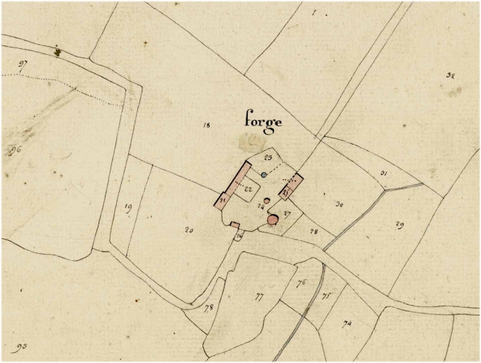Le site de la Haute Forge, autrement appelé les Forges ou la Forge, conserve les quelques vestiges du logis d'un manoir du 16e siècle pour l'essentiel détruit ; seuls quelques éléments d'architecture, cheminées et baies sont remployés dans une ferme reconstruite en limite du 19e siècle et du 20e siècle. Hors la toponymie et l'étang situé à l'est, ne subsiste pas un élément d'architecture liée à l'activité industrielle. La chapelle où l'on célébrait un mariage en 1637 est détruite. [Guillotin de Corson]. Le cadran solaire en ardoise, signalé par P. Banéat, portant les inscriptions 1654 / [monogrammes du Christ et de la Vierge] / M : An : Chevallier : all. Du Gué a disparu.