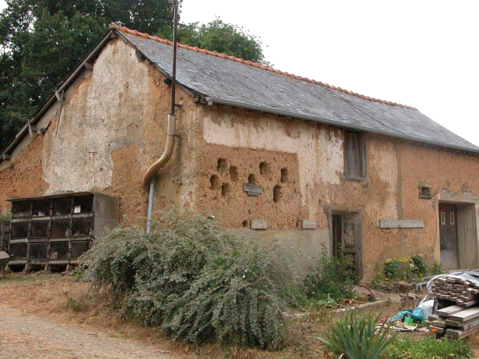 Désaffectée, en mauvais état, la ferme probablement construite au milieu du 19e siècle, est représentative des anciens logis traditionnels à fonctions combinées réunissant logement et étable ou cellier sous le même toit. Une partie agricole perpendiculaire au sud présente dans la maçonnerie de terre les niches formant d'anciens nids de poules d'un poulailler autrefois appliqué au mur ouest.