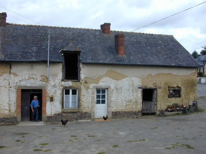 Cette ferme est construite en terre sur un solin de schiste. Elle est couverte d'ardoise. Certaines ouvertures du rez-de-chaussée ont été remaniées. De plus, des portes hautes et des portes hautes pendantes sont percées dans le comble à surcroît.