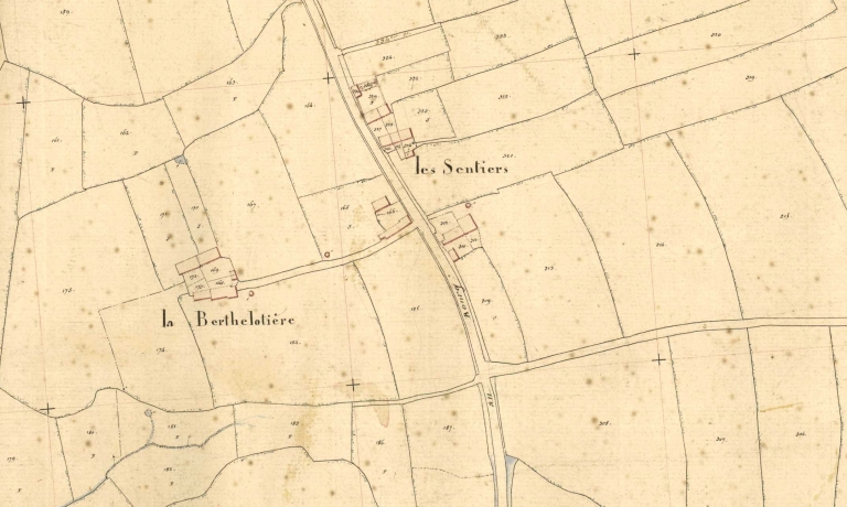 Lors de la réalisation du cadastre napoléonien en 1845, il existait, à cet endroit, trois alignements de plusieurs logis à l'est de la route. Il existait également une ferme à l'ouest de la route. Cet écart est, aujourd'hui, composé de bâtiments implantés uniquement à l'est de la route. Il est d'ailleurs intéressant de noter que la majorité des bâtiments sont implantés de façon perpendiculaire à la route, le but étant vraisemblablement de bénéficier d'une façade au sud.