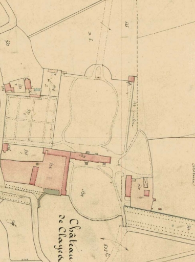 Château de Clayes en Romillé [sic]. Environs de Rennes. A M. le Comte de Palys, Bretagne (Collection E. Hamonic), cliché de monsieur le comte Alain de la Tour [s.d.] (A. D. d'Ille-et-Vilaine : Clayes 6 Fi).