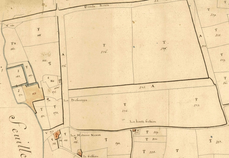 Pleumeleuc. Section E dite de la Besneraye, 1ère feuille. Anonyme [1809], échelle 1/2500 e. (A.D. Ille-et-Vilaine).