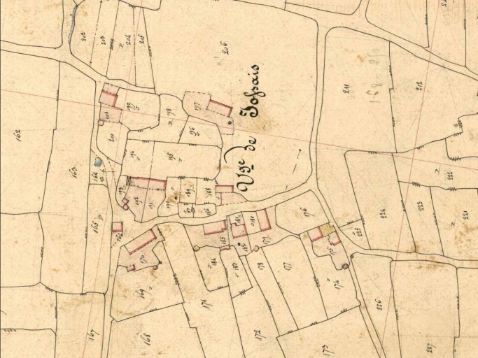 Saint-Gonlay, section A dite de la Jossais, 1e feuille. Dessin, Déclaye, géomètre, [1842], échelle 1/2000e. (A.D. Ille-et-Vilaine).