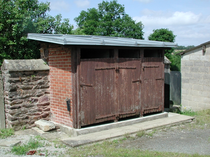 La mairie-école est construite en moellons de schiste, agrémentés de frises et de linteaux en briques rouges et ocres. Les maçonneries du pavillon présentent trois types d'appareil : réglé pour le soubassement, polygonal entre le soubassement et la première frise de briques, et irrégulier pour le reste de l'élévation. La tête du pignon sur cour reprend un appareil polygonal dans un cartouche de briques. La toiture porte des demi-croupes et des fenêtres à fronton.