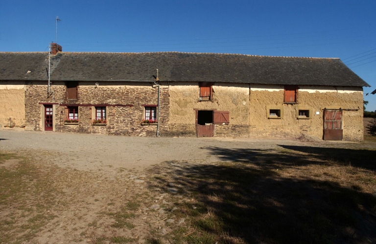 Les murs du logis sont en moellons de schiste (avec surélévation en terre) ; les dépendances agricoles sont construites en bauge. Les couvertures sont en ardoise.