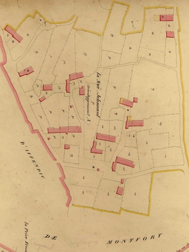 Plan parcellaire de la commune de Talensac. Section B, dite du Guihermoux, 1ère feuille. Dessin, [Augier, géomètre, 15 février 1846], échelle 1/2000e. (A.D. Ille-et-Vilaine).