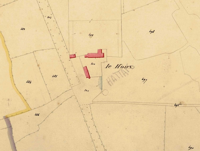 Plan parcellaire de la commune de Talensac. Section A, dite du Bourg, 5e feuille. Dessin, [Augier, géomètre, 15 février 1846], échelle 1/2000e. (A.D. Ille-et-Vilaine).