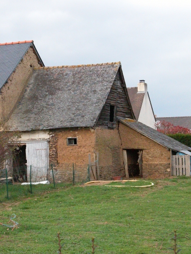 Cette ancienne ferme de bourg en bauge est située en retrait de la route et sa façade est orientée au sud. Elle est composée, en longueur, d'un ancien logis, d'une étable et d'un cellier. La façade principale est percée au rez-de-chaussée de deux baies vitrées aux extrémités, à l'emplacement des anciennes portes de grange, et de deux portes. Tous les linteaux sont en bois et les jambages sont en schiste et en bauge. Une fenêtre est également présente avec un encadrement en brique avec un arc surbaissé et des jambages en chaînages harpés. A l'étage apparaissent trois fenêtres, chacune encadrée d'une carrée de bois.