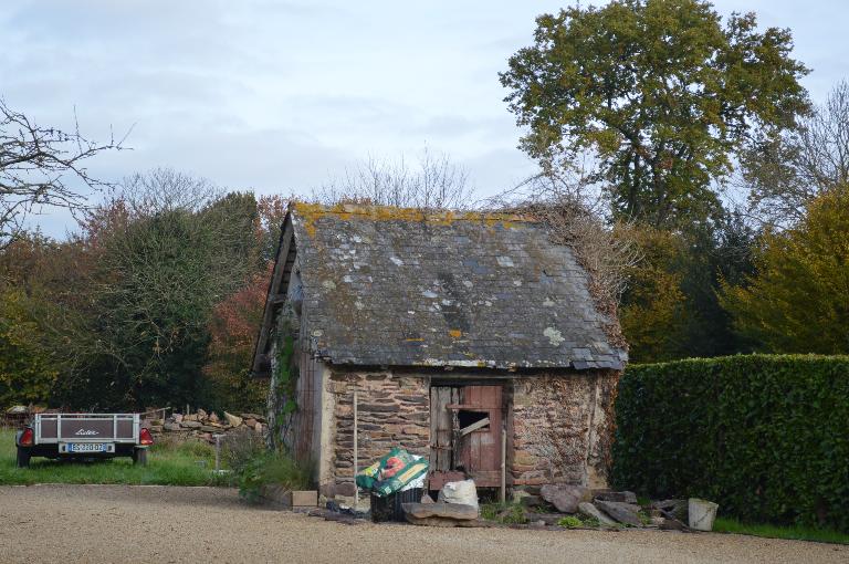 Une soue à cochon entièrement maçonnée en schiste et couverte d'une toiture d'ardoises à deux pans est également présente. Cette soue est percée d'une porte au sud qui est surmontée d'un linteau de bois.