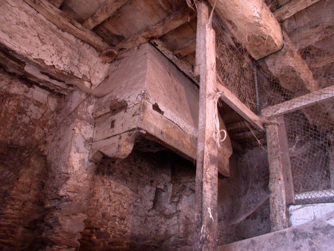 Gros oeuvre en moellons de schiste. Extension en terre. Linteaux de bois.