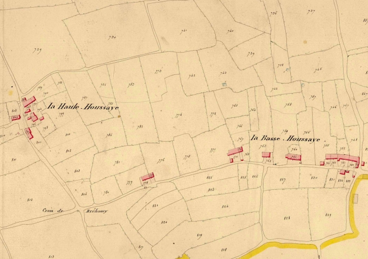 La Houssaye est composée de la Haute et de la Basse Houssay. Cet écart reprend le même toponyme (hormis l'article) qu'un autre village situé plus au nord, le Houssay. Il est composé de quelques fermes mentionnées sur le cadastre de 1845 et d'une maison de retenue de la fin du 17e siècle.