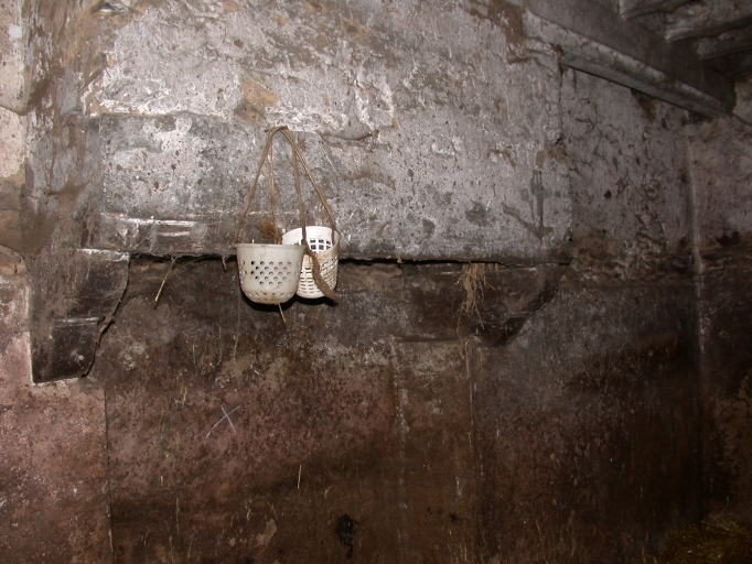 Ferme composée d'un alignement de trois logis. Le fonds le plus ancien peut remonter au 17e siècle. Deux logis ont été déclassés en dépendances. Leurs cheminées témoignent de remaniements postérieurs du 18e ou du 19e siècles. Une surélévation en terre est visible sur le pignon. Les étables en terre sont du 19e siècle. A noter les corbelets sculptés dans la partie la plus ancienne.