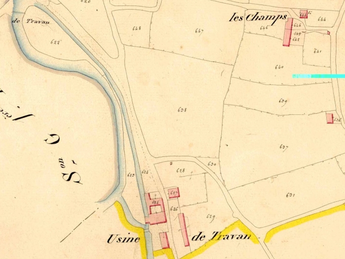 Moulin à eau puis filature, l'usine de Travan est reconstruite dans la première moitié du 19e siècle puis après 1940, suite à un incendie.