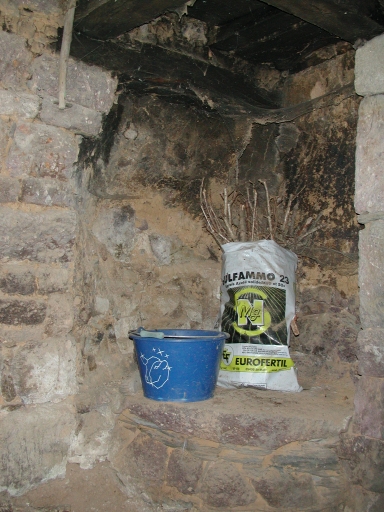 Ce bâtiment est construit en moellon de schiste et de poudingue. Les baies, en arcs segmentaires, possèdent des encadrements de poudingue. Le toit à croupes est recouvert d'ardoise. La façade est divisée en trois travées. D'autre part, au nord-ouest de la maison, se trouve un fournil adossé au mur de clôture du jardin. Le jardin est donc situé à l'ouest du logis, il est clos de murs. Un bâtiment est accolé à l'est du logis. Il est construit en moellon de schiste et de poudingue également. Ce bâtiment possède un usage de dépendance, en effet, la partie est abrite une grange et la partie ouest une écurie. Il est accolé d'un appentis postérieur servant de cellier et de porcherie. Enfin, au sud-est de la maison, s'élève un autre logis, celui-ci a été remanié.