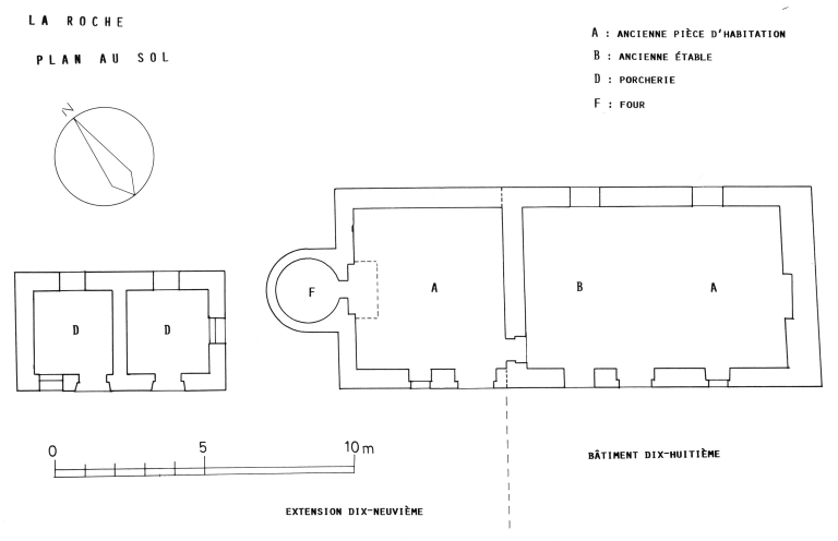 Cette construction est élevée en moellon de schiste et de poudingue pour la partie est et en bauge sur un solin de schiste et de poudingue pour la partie ouest. Les murs de la partie est ont été surélevés avec de la terre. Le bâtiment principal est composé d'une pièce d'habitation à lest et d'un four à l'ouest. A l'ouest, s'élève des refuges à porcs construits en bauge sur un haut solin de schiste.
