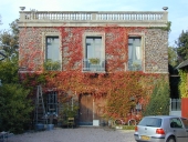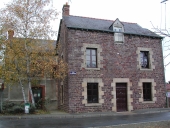 La partie basse des murs de cette maison est en moellon de schiste et de poudingue alors que la partie haute est enduite. Le toit à croupes est couvert d'ardoise, il possède un léger coyau. De plus, ce toit possède des épis de faîtage et une crête, c'est-à-dire un ornement en métal ou en terre cuite qui surmonte le faîte du toit. Certaines ouvertures du rez-de-chaussée ainsi que la lucarne sont équipées de garde-corps en fer forgé. Enfin, la porte est surmontée d'un auvent recouvert d'ardoise.