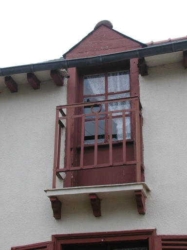 Cette maison en pans de bois enduit possède une cave. Elle est couverte d'un toit à croupes et le comble à haut surcroît est percé de deux portes hautes pendantes. Ces deux portes hautes pendantes possèdent d'ailleurs des garde-corps en fer forgé.