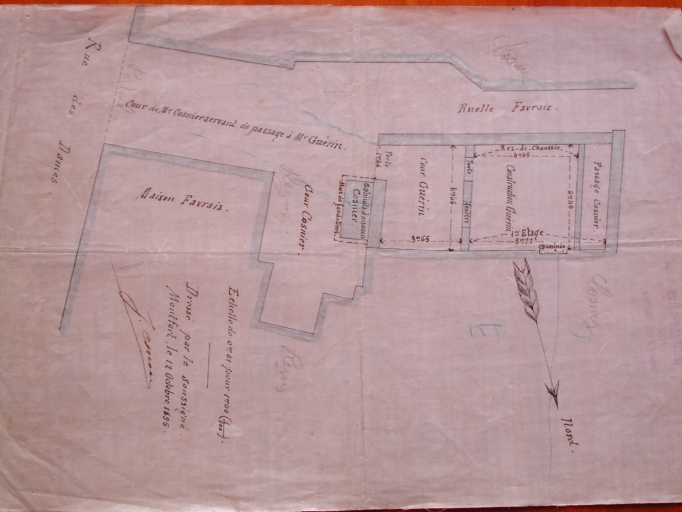 La façade de cette maison est constituée d'une alternance de bandeaux de schiste/poudingue et de brique. Les murs pignons et celui de la façade arrière sont, quant à eux, élevés en moellon de schiste et de poudingue. La façade sur rue possède une devanture en bois au rez-de-chaussée. Par ailleurs, la lucarne centrale est couverte d'un toit en pavillon, couronné d'un épi de faîtage. La cage d'escalier est recouverte de boiseries derrière lesquelles se trouvent des placards. A l'arrière de cette maison, existe une petite construction en brique avec des encadrements de tuffeau.