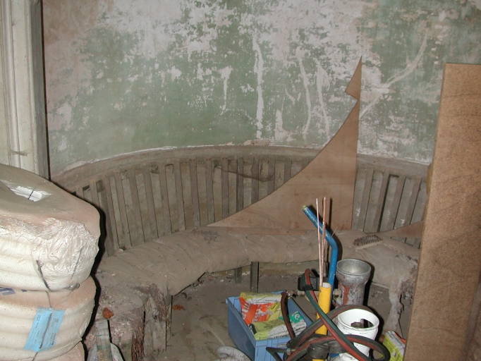 Ce bâtiment est élevé en moellon de schiste et de poudingue. Les entourages de baies sont en granite et en poudingue. La partie supérieure du pavillon est construite en pan de bois enduit. Il existe deux petits appentis accolés à la façade postérieure. De plus, au fond du jardin, s'élèvent le long de l'ancien mur d'enceinte de la ville, une orangerie et une serre. Des vestiges de la tour du Capitaine, tour de l'enceinte urbaine subsistent également dans le jardin de cette maison.