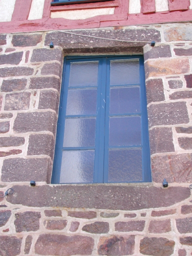 Ce bâtiment est composé de deux parties distinctes non contemporaines. En effet, le bâtiment ayant pignon sur rue est construit en moellon de schiste et de poudingue ainsi qu'en pan de bois. La façade principale de ce bâtiment donne sur la cour et non sur la rue. Les baies de cette partie sont encadrées de poudingue et de granite. Le pignon est percé d'une porte entourée de deux oculi grillés au rez-de-chaussée. Cette partie possède une cheminée monumentale en poudingue au sud et un escalier droit en bois avec des marches pleines. La seconde partie est composée d'une maison élevée au sud du premier bâtiment. La façade de celle-ci est percée de deux travées.