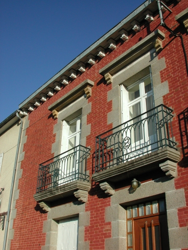 La façade de cette maison est élevée en brique avec des encadrements de baies en granite. Elle est percée de trois travées et les baies de l'étage possèdent des tablettes ainsi que des balcons reposant sur des consoles en granite. Les ouvertures du rez-de-chaussée et de l'étage possèdent également des garde-corps en fer forgé.