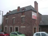 Cette construction s'élève, sur une cave, en moellon de schiste et de poudingue. Les encadrements de baies sont en schiste et en poudingue également. Cependant, les linteaux des baies de l'étage sont en bois. Le toit est couvert d'ardoise et le comble à surcroît est percé de deux portes hautes pendantes. De plus, il existe un appentis postérieur en bauge.