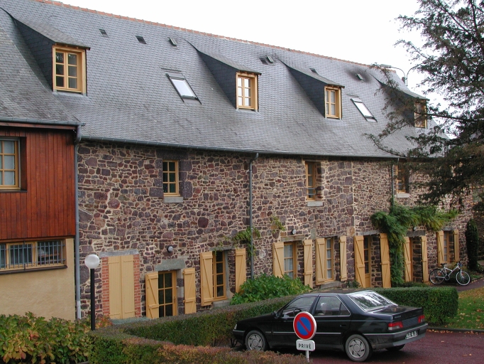 Le rez-de-chaussée de ce bâtiment est élevé en moellon de schiste et de poudingue alors que l'étage est en pan de bois. Le toit est couvert d'ardoise et percé de lucarnes à croupe débordante. Les ouvertures du rez-de-chaussée et notamment la porte en plein cintre sont chanfreinées. De plus, le pan de bois de l'étage présente des motifs de brins de fougères et de croix de Saint André.