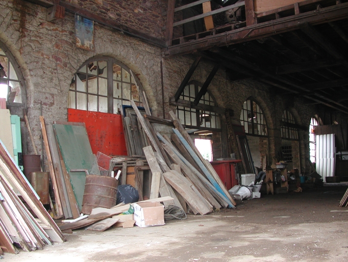 Les bâtiments de cette ancienne usine sont élevés en moellon de schiste et de poudingue. La toiture est couverte d'ardoise et les encadrements de baie sont en brique.