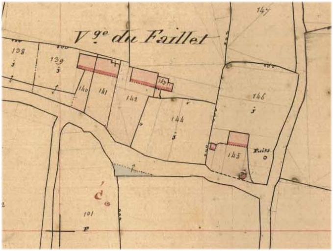 Plan géométrique parcellaire de la commune de Bédée, section B1 dite de la Ténédais, levé par Fouchet géomètre, [1843], échelle 1/2000e (A. D. d'Ille-et-Vilaine : 3 P 5256/1).